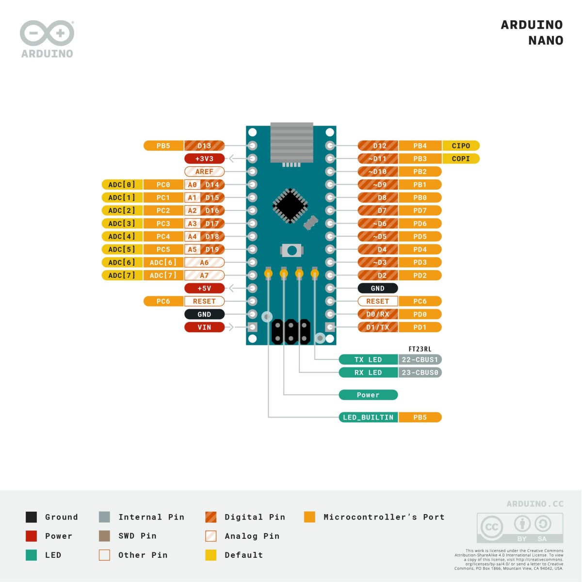 Este modelo genérico es completamente compatible con el Arduino Nano.Microcontrolador: Atmel ATMEGA..