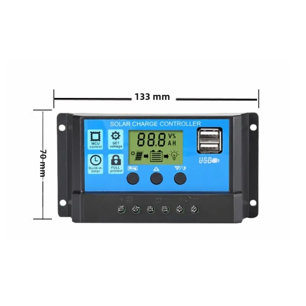 - Protecciones: Sobrecarga, descarga profunda, cortocircuito, conexión inversa, sobrecalentamiento