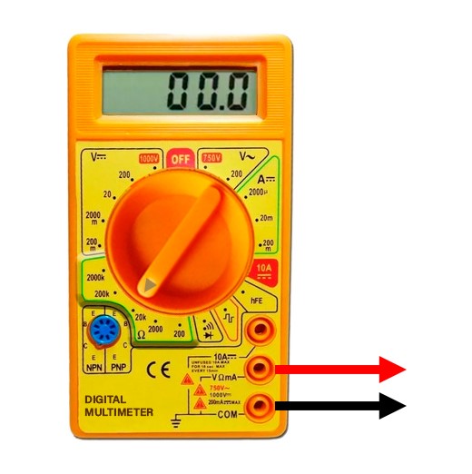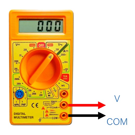 Útil para medir el nivel de voltaje o tensión eléctrica (V) en corriente directa (CD). Por ejemplo, en baterías o cargadores.