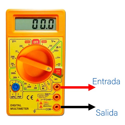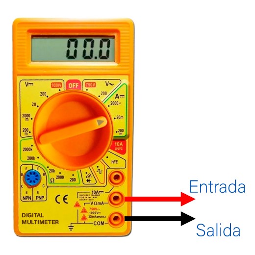 En este multímetro únicamente podemos medir en corriente directa (CD). Otros modelos permiten en corriente alterna (CA) hasta cierto nivel.