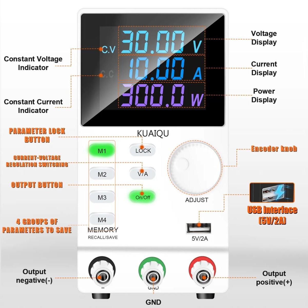 Fuente DC Kuaiqu SPPS3010D-232 con memoria e interfaz USB - 30V 10A