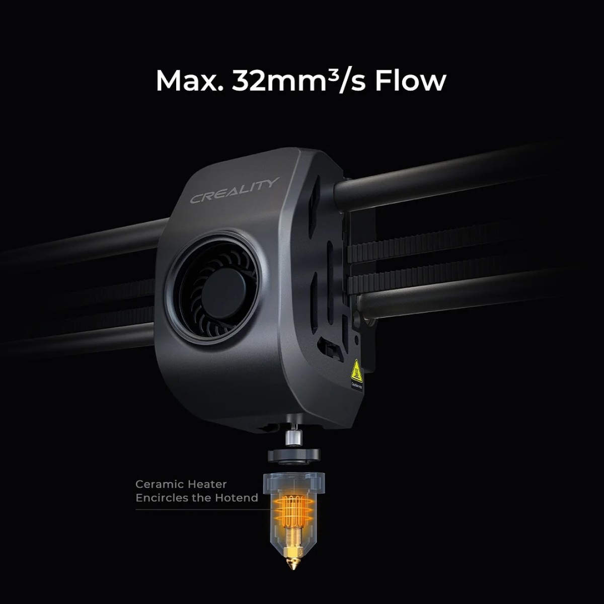 - Sistema de extrusión avanzado: Equipada con un calentador cerámico que rodea todo el hotend, alcanzando 200°C en 40 segundos, una extrusora directa de doble engranaje que proporciona una fuerte fuerza de extrusión, y un hotend con un heatbreak de aleación de titanio y una boquilla de acero endurecido, operando eficientemente hasta 300°C.