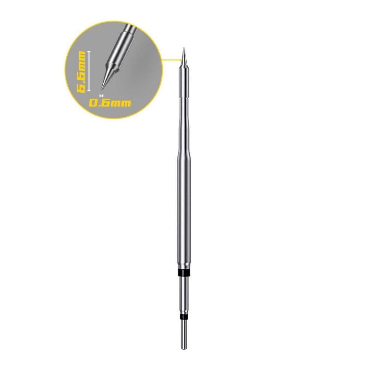 La punta de cautín Fnirsi HS02B-I es un cartucho de repuesto diseñado exclusivamente para el cautín inteligente de precisión Fnirsi HS-02B. Su diseño con núcleo calefactor interno proporciona una transferencia térmica directa, rápida y altamente eficiente hacia la zona de soldadura. El perfil tipo aguja (modelo I) se caracteriza por ser extremadamente fino y afilado, lo que le otorga una precisión superior para acceder a espacios muy reducidos y trabajar con componentes de tamaño miniatura en placas de alta densidad. Al igual que los demás consumibles de esta serie, está fabricada para manejar la potencia del equipo de forma estable, siendo una pieza de formato delgado (tipo 210) que es incompatible con la versión HS-02A.